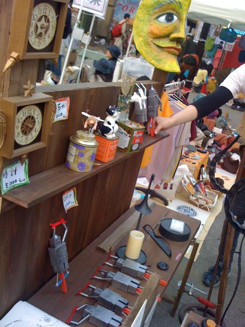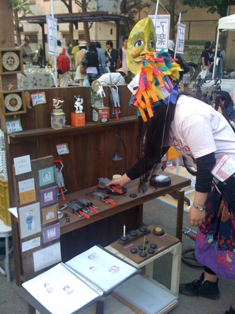 けれども彼はまもなく消失してしまう。 そのかわりラッコの欠片を形見として プレゼントしてくれる。 おつかれさま はやぶささん。 クラゲはのうみそがないのだけれども からだ全体がのうみそなんだって。 来週、2010年5月23日(日)Make: Tokyo Meeting 05にて 「kotota:ma」の名前にてガラス作品を出展しますのでぜひ遊びにきてください。 ※5月22日(土)は出展しておりませんのでお気を付けください。 開催日:2010年5月22日(土)、23日(日) 時間:22日 11:00 - 18:00、23日 10:00 - 17:00 会場:東京工業大学 大岡山キャンパス(東京都目黒区大岡山2-12-1) 入場:無料 交通:東急大井町線・目黒線「大岡山駅」徒歩1分 主催:株式会社オライリー・ジャパン 共催:東京工業大学、多摩美術大学 情報デザイン学科 協力:東京工芸大学 インタラクティブメディア学科 http://jp.makezine.com/blog/2010/05/mtm05.html 出展者およびブースのご案内 ftp://ftp.oreilly.co.jp/make/mtm05_map_and_makers_0518.pdf kotota:maのブースは体育館入り口すぐです。 サウンドイベント、ワークショップなども行なわれ 飲食の出展もあるため一日中遊ぶことができます。 みなさまのお越しをココロよりおまちしております! いままですごく寒くて冬コートはいつクリーニング屋に預ければいいの? けれどもびっくりするぐらい急ぎ足の春一番、というか嵐が行き過ぎて、 その記憶を喰い尽くすように穏やかで暖かい大きなGWのはじまり。 目も痛くなるような青空の殺菌効果にも負けず高円寺は混沌と雑菌主義で 大道芸が繰り広げられていてよさこい祭りに次ぐ混雑ぶり。 あらごめんなさいっとその群衆をかきわけて 相模湖あるいは上野原で出会った鍛金と絵描きのカップルに 会いにいくつもりでアート楽市が繰り広げている北の公園へ。 座・高円寺にて絶賛活躍中のGEPPETTOさんと 一緒に出展しているのを発見。。。 大人気だったGEPPETTOさんの作品たち。 月のお面が気になります。 贅沢なからくり人形。 ぐっと来る紅茶の缶のうえにキューピット ![]() あまりにものかわいさにファンはこの前に立ったら はっきり見ることはできません。。。。涙で曇っちゃって。。。 手前はバイオリニストでもあり絵描きでもある (なんて多才なんでしょう。。。) コウロクミチコさんの似顔絵コーナー ![]() その場で似顔絵を描いてくれます! 柔らかい色調がここちよいのですー ![]() 祥鍛房さんの作品たち。 漆を焼き付けた加工で鉄の皮膜がイイ鈍色をかもしだしています。 ろうそく立ての上にあるラッパは取り外しができて 火のついたろうそくに被せると火を消すことができます。 右にあるのはドアの取っ手です。 こんな取っ手のついているおうちに住みたいのん ![]() 祥鍛房さん×コウロクミチコさん×kotota:maにて 悪だくみ進行中。 そしてkotota:maの短いGWはおわったのでした。 あとは↓に向けて現在、制作中ですので 遊びに来てください ![]() サンリオピューロランドの近くですー 5月5日(祝水) 多摩センター駅前アートアモーレ 1.京王多摩センター駅、または小田急多摩センター駅南口を出て、パルテノン大通りを真っ直ぐ進む。 2.パルテノン多摩の目の前がアート・アモーレ会場です! よろしくおねがいします! |